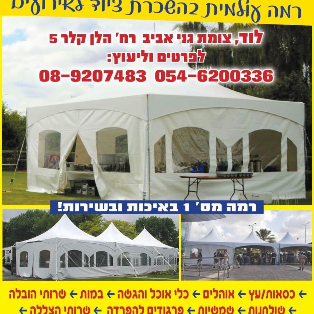 פתרון מושלם לאירועים בחוץ – אוהלים חזקים, מרווחים ואטומים לגשם או שמש. מגיעים בגדלים שונים לפי צרכי האירוע, עם אפשרות לרצפה, תאורה ואוורור.